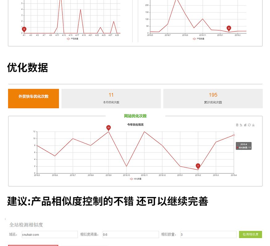 客戶公司于2014年創(chuàng)立于中國青島,是行業(yè)內(nèi)發(fā)制品供應(yīng)商,致力于高端假發(fā)、睫毛的出口貿(mào)易。谷歌seo推廣效果怎么樣?我們的Google優(yōu)化推廣假發(fā)睫毛行業(yè)案例客戶于2017年選擇外貿(mào)快車產(chǎn)品,初次簽訂了1年合作協(xié)議,2018年到期以后選擇了一次性續(xù)費3年。目前外貿(mào)快車網(wǎng)站上共發(fā)布了1341個產(chǎn)品,并且客戶很注重產(chǎn)品文案的質(zhì)量,不相似產(chǎn)品的比例高達80%以上。產(chǎn)品新聞和行業(yè)知識也持續(xù)在更新中,目前網(wǎng)站上已發(fā)布111條新聞和113條行業(yè)知識。這些頁面共計為客戶帶來2258條詢盤,日均流量更是高達264個。