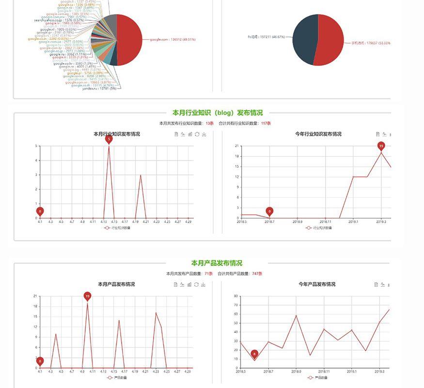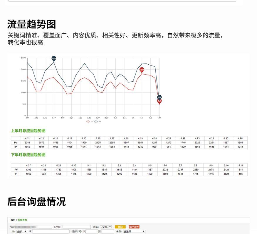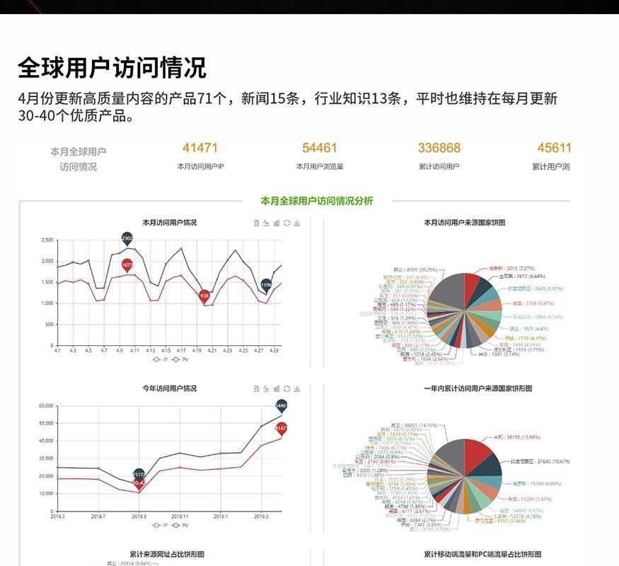 該客戶選擇的是外貿(mào)快車超級版A套餐,目前已合作2年,網(wǎng)站總達(dá)標(biāo)天數(shù)701天。zui新排名在谷歌首頁的關(guān)鍵詞數(shù)量為1204個(gè)。客戶很注重網(wǎng)站更新及運(yùn)營情況,4月份,客戶共計(jì)更新高質(zhì)量內(nèi)容的產(chǎn)品71個(gè),新聞15條,行業(yè)知識13條,平時(shí)基本會維持在每月更新30-40個(gè)優(yōu)質(zhì)產(chǎn)品。在這么多高質(zhì)量的頁面帶動下,網(wǎng)站的日均流量可達(dá)到1500個(gè)以上,共計(jì)帶來1268個(gè)詢盤(不包含直接發(fā)郵件至郵箱的詢盤)。