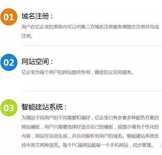 億企寶為滿足不同用戶的不同需要和偏好,已有多套多種配色方案的網站模板,用戶只需要選擇好適合自己的模板,按提示填充個性化的內容,網站可自動生成,并自動解析到用戶的域名。智能建站系統支持中英文兩種語言。每個PC端網站配備一個手機網站,同步管理。