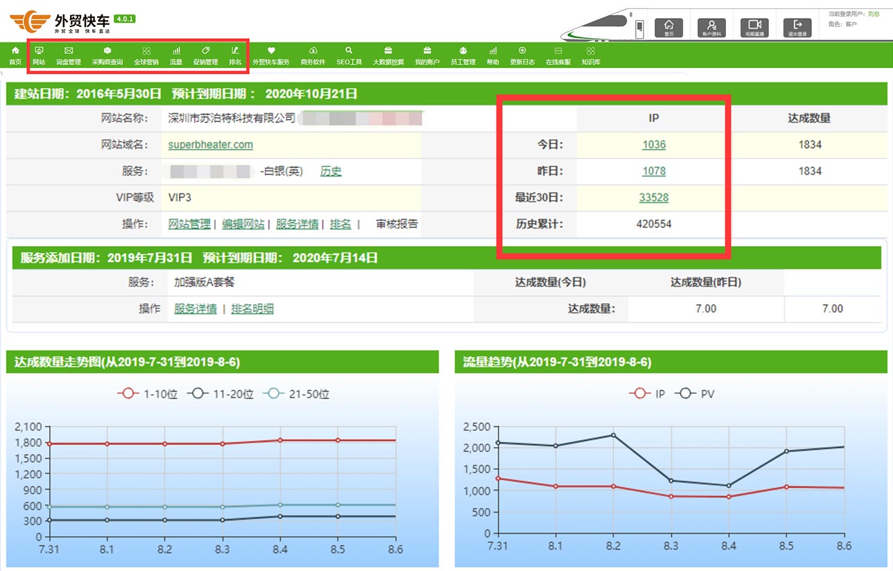 外貿(mào)快車智能監(jiān)控系統(tǒng)每天實(shí)時(shí)統(tǒng)計(jì)用戶網(wǎng)站的PV和訪問IP。