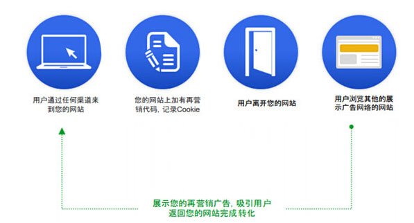 就是將之前來過您網(wǎng)站的訪客再次帶回您的網(wǎng)站,給予網(wǎng)站更多機(jī)會,從而增大完成轉(zhuǎn)化的可能 再營銷標(biāo)記可嵌入網(wǎng)站中的任何頁面,進(jìn)而幫助您更精準(zhǔn)地定位受眾群體。例如,將再營銷代碼 嵌入網(wǎng)站首頁,在用戶訪問您網(wǎng)站首頁時,其Cookie ID就會被添加到再營銷列表中。。